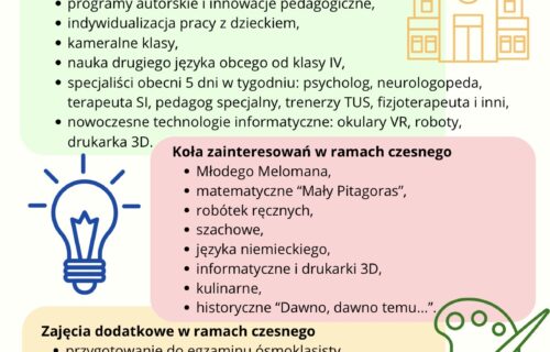 Szukasz szkoły, która kompleksowo zajmie się Twoim dzieckiem, oraz zapewni mu optymalny i harmonijny rozwój, z poszanowaniem jego indywidualnych potrzeb i zainteresowań, rozwijającej kompetencje społeczne i umiejętności praktycznego myślenia, kształtującej uniwersalne postawy, utrwalającej właściwe wzorce, gdzie dziecko czuje się bezpieczne, wartościowe i szanowane?