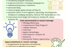 Szukasz szkoły, która kompleksowo zajmie się Twoim dzieckiem, oraz zapewni mu optymalny i harmonijny rozwój, z poszanowaniem jego indywidualnych potrzeb i zainteresowań, rozwijającej kompetencje społeczne i umiejętności praktycznego myślenia, kształtującej uniwersalne postawy, utrwalającej właściwe wzorce, gdzie dziecko czuje się bezpieczne, wartościowe i szanowane?