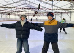 Uczniowie klas 4–7 uczestniczyli w zajęciach wychowania fizycznego na lodowisku miejskim. Podczas lekcji uczyli się podstaw jazdy na łyżwach oraz doskonalili równowagę i koordynację ruchową. Zajęcia przebiegały w miłej atmosferze i sprawiały uczniom dużo radości.