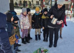 🫧❄️ Klasa 1b zamieniła się dziś w małych odkrywców 🔍 Na mrozie podziwialiśmy parę wodną i robiliśmy zamarzające bańki mydlane – było dużo „wow!”, śmiechu i zachwytu. Zima może być naprawdę magiczna ❄️😊