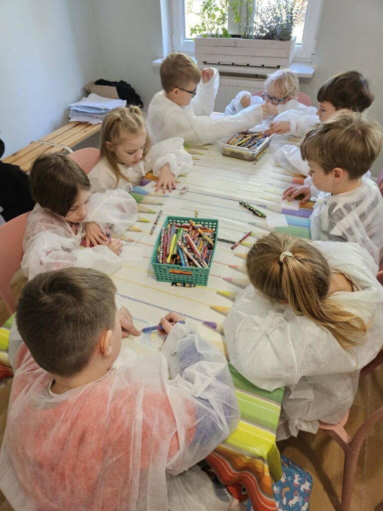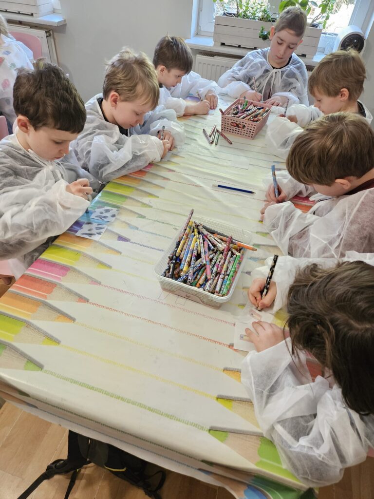 Klasy 1a i 1b uczestniczyły w wyjątkowych warsztatach edukacyjnych w Starym Kinie w Milanówku prowadzonych przez artystów z Polskiej Opery Królewskiej. Podczas spotkania uczniowie mieli okazję zobaczyć, jak wykonywany jest profesjonalny makijaż śpiewaczki operowej. Artyści opowiedzieli o kulisach swojej pracy, zdradzili tajniki scenicznej charakteryzacji oraz pokazali, jak wielką rolę w występach operowych odgrywa odpowiednio dobrany makijaż. W drugiej części warsztatów dzieci same mogły wcielić się w rolę małych charakteryzatorów. Z ogromnym zaangażowaniem wykonywały karnawałowe makijaże, rysując na swoich twarzach kolorowe maski i fantazyjne wzory. To było niezwykle inspirujące i radosne spotkanie ze światem sztuki, które na długo pozostanie w pamięci naszych uczniów. 🎭✨