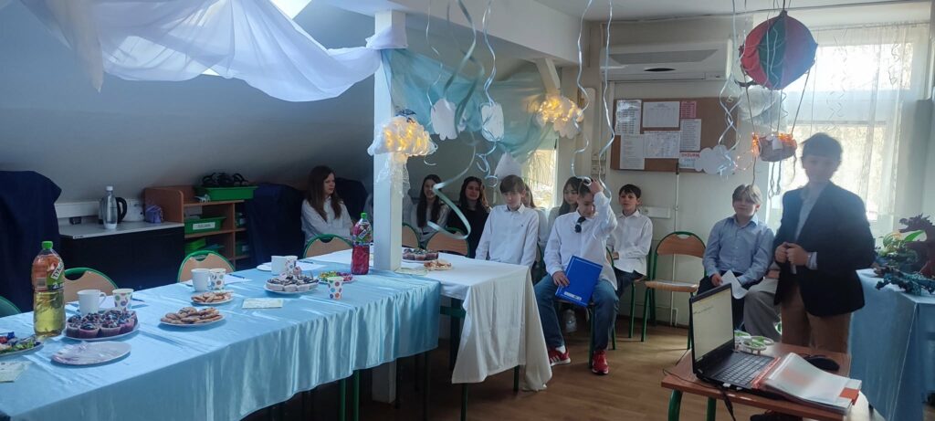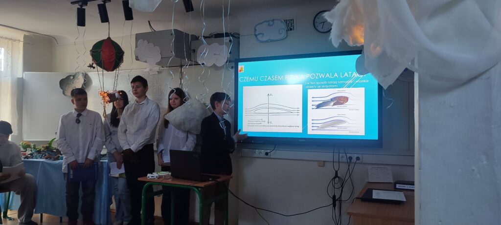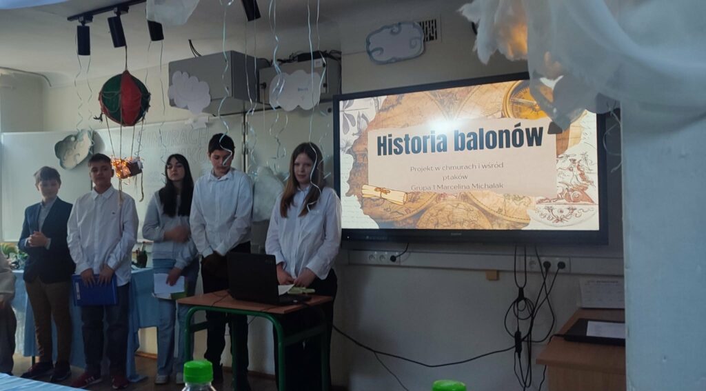 Uczniowie klasy siódmej realizowali przez cały rok szkolny projekt międzyprzedmiotowy „W chmurach i wśród ptaków”. W piątek 17 kwietnia uroczyście zaprezentowali efekty swojej pracy. Posypały się pochwały i szóstki z wielu przedmiotów – gratulujemy!!!