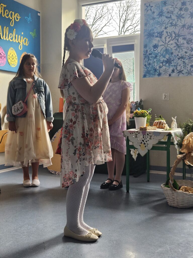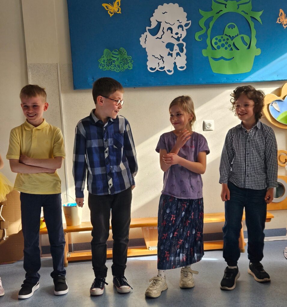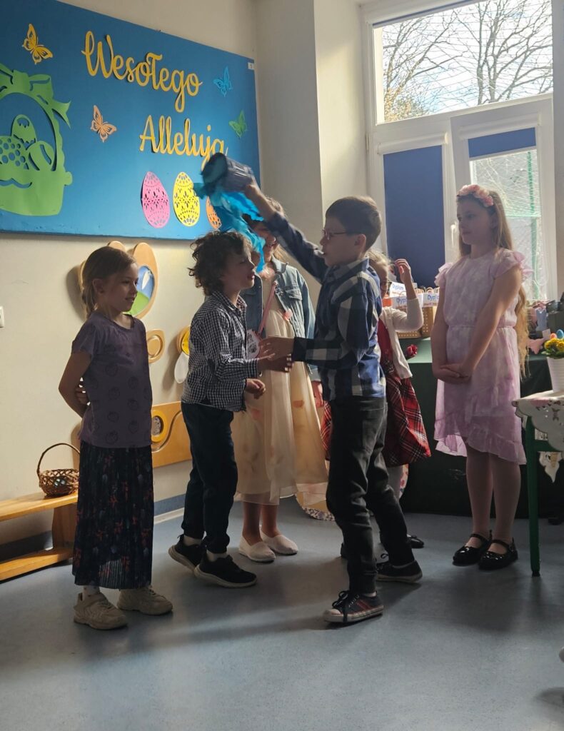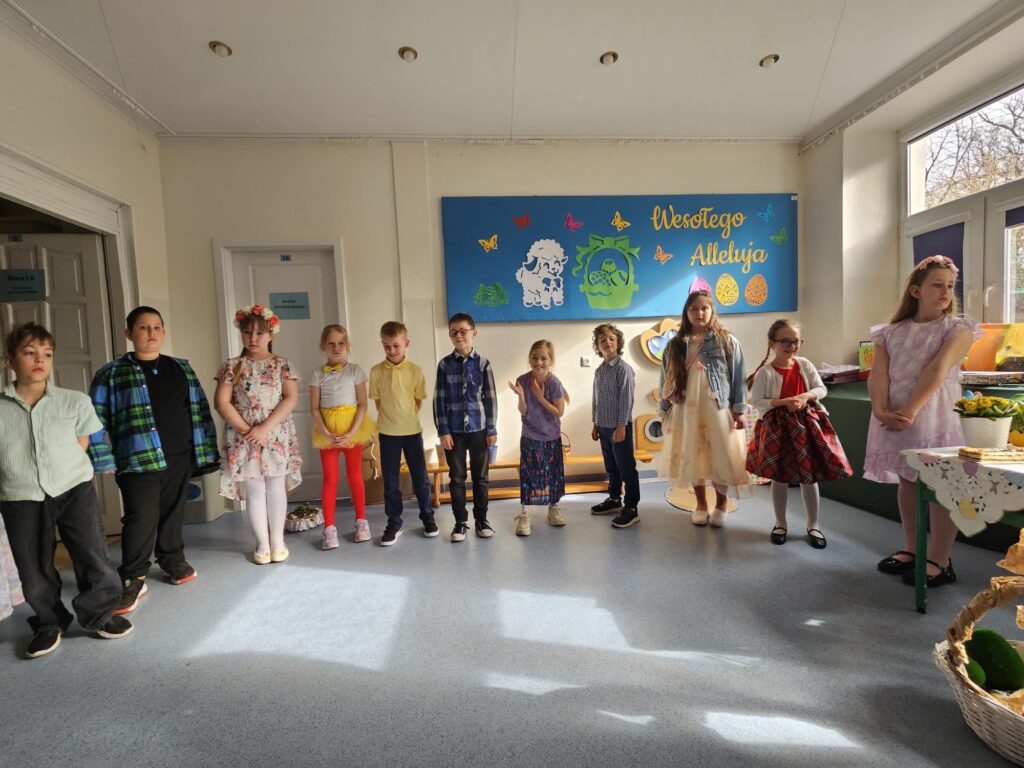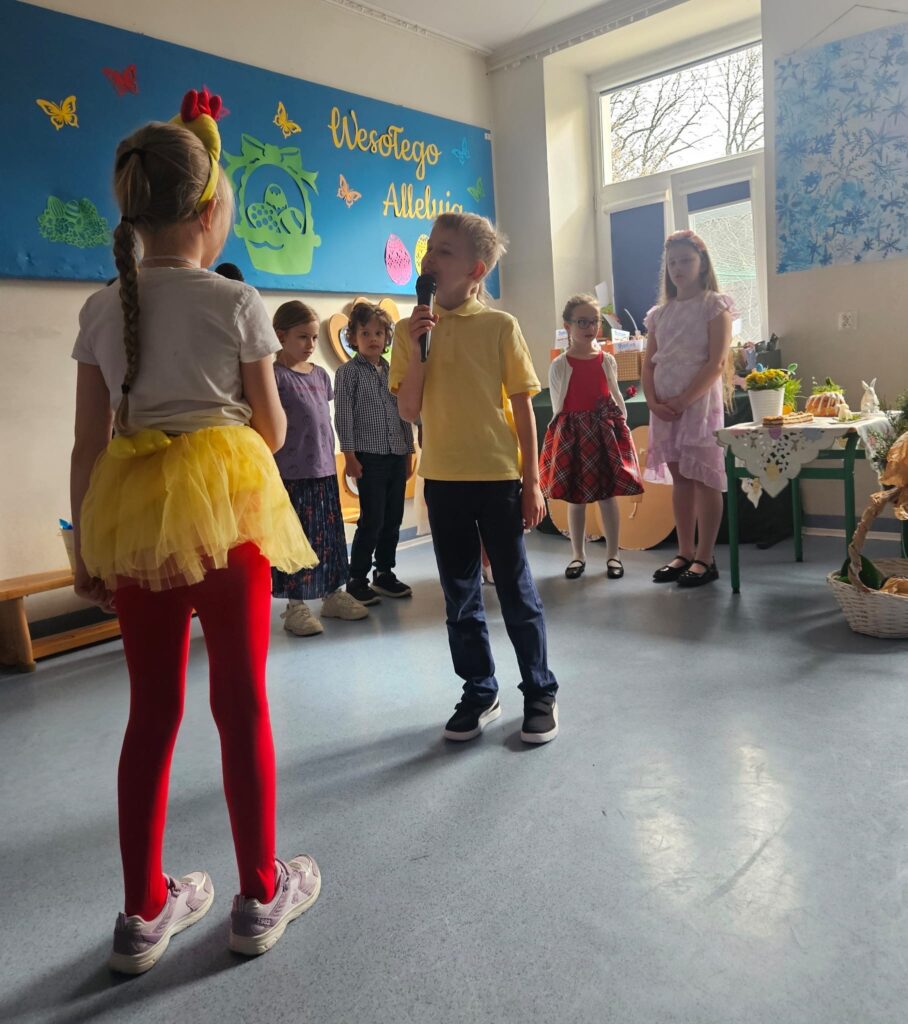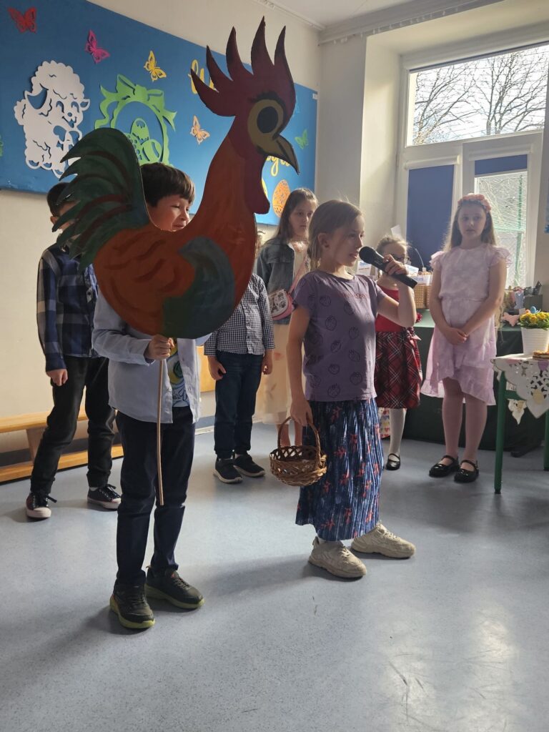 Ten dzień wyglądał zupełnie inaczej niż zwykle. Uczniowie klasy 2 przygotowali piękne przedstawienie wielkanocne, wprowadzając wszystkich w radosny nastrój i składając serdeczne życzenia spokojnych Świąt.