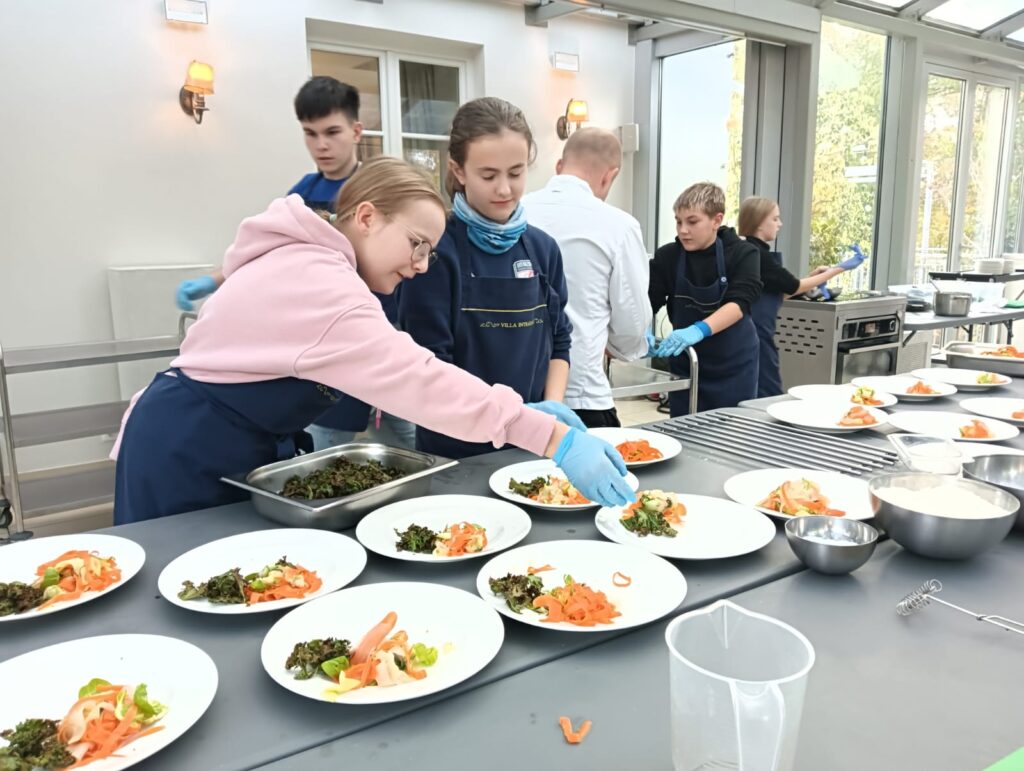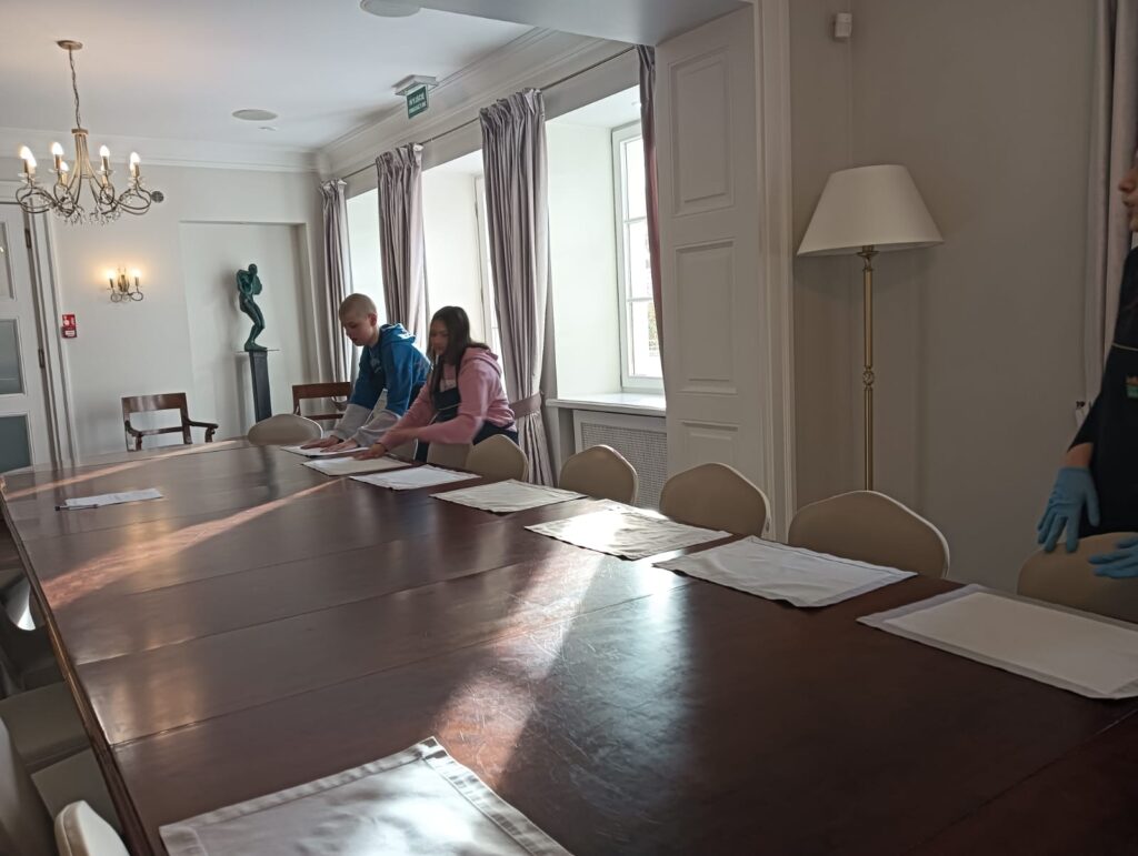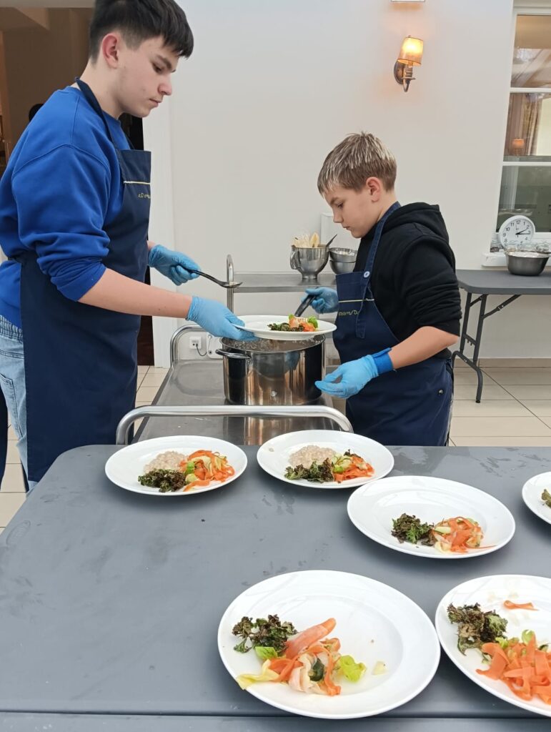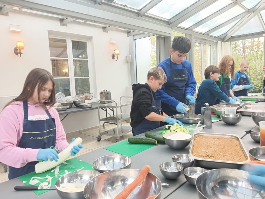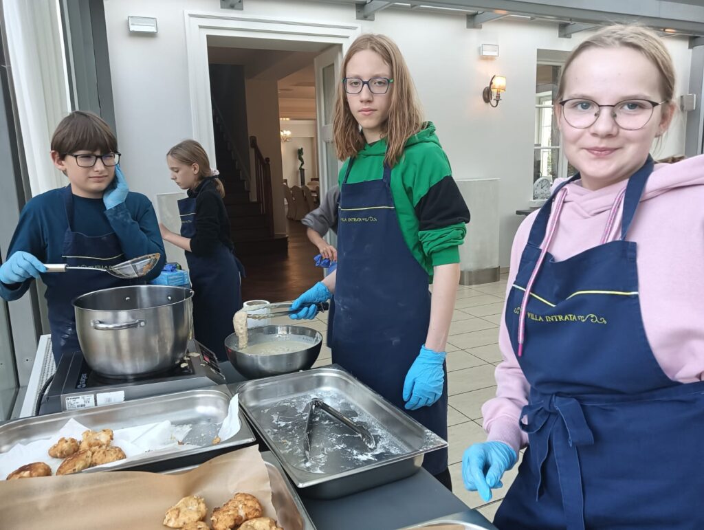 W minionym tygodniu klasy 5a i 6a pojechały do Muzeum Pałacu Króla Jana III. Ta okazała rezydencja Króla Polski stała się dla naszych uczniów miejscem zmagań kulinarnych i kaligraficznych. W pierwszym punkcie programu wszyscy uczestnicy wycieczki, pod okiem wykwalifikowanych kucharzy, przygotowali wykwintne dania kuchni staropolskiej a następnie podali je w sposób godny królewskiego dworu. Drugim punktem programu były warsztaty kaligrafii, podczas których dzieci pisały nadzwyczaj starannie, według podanego wzoru liter.