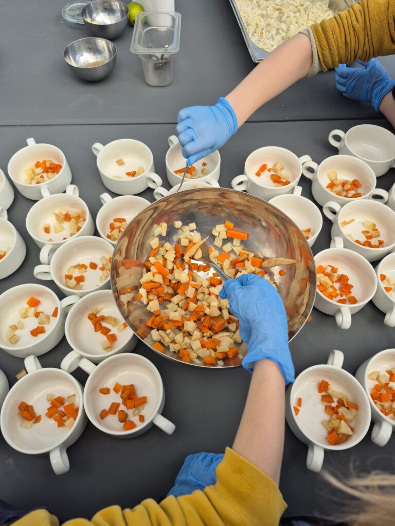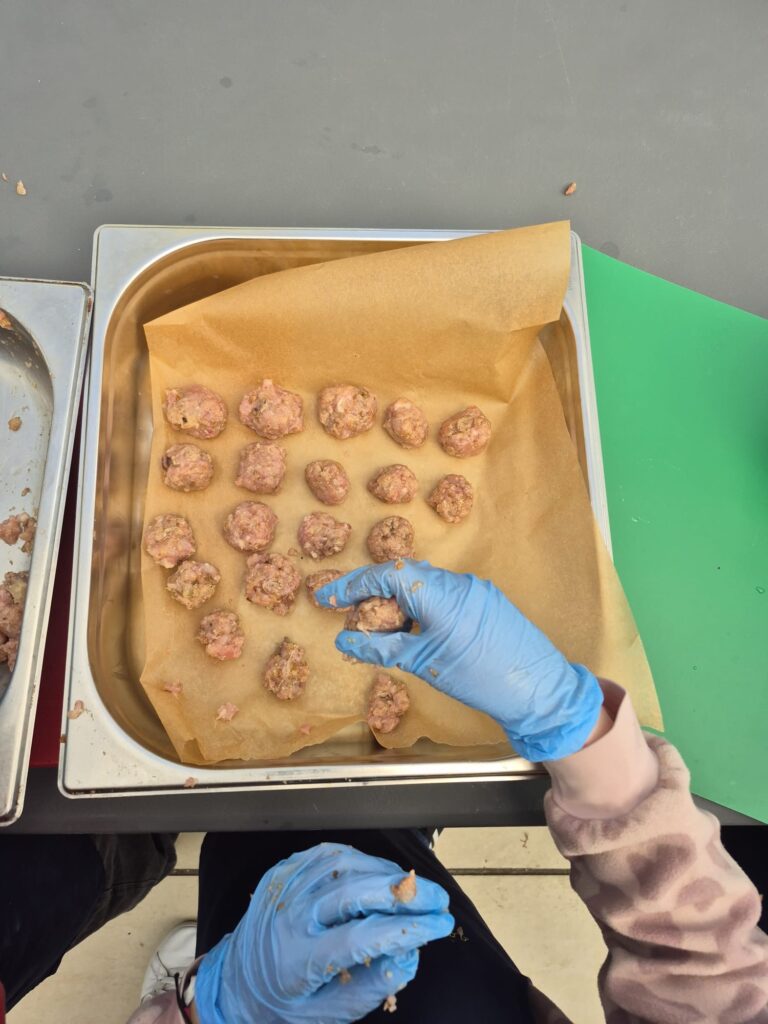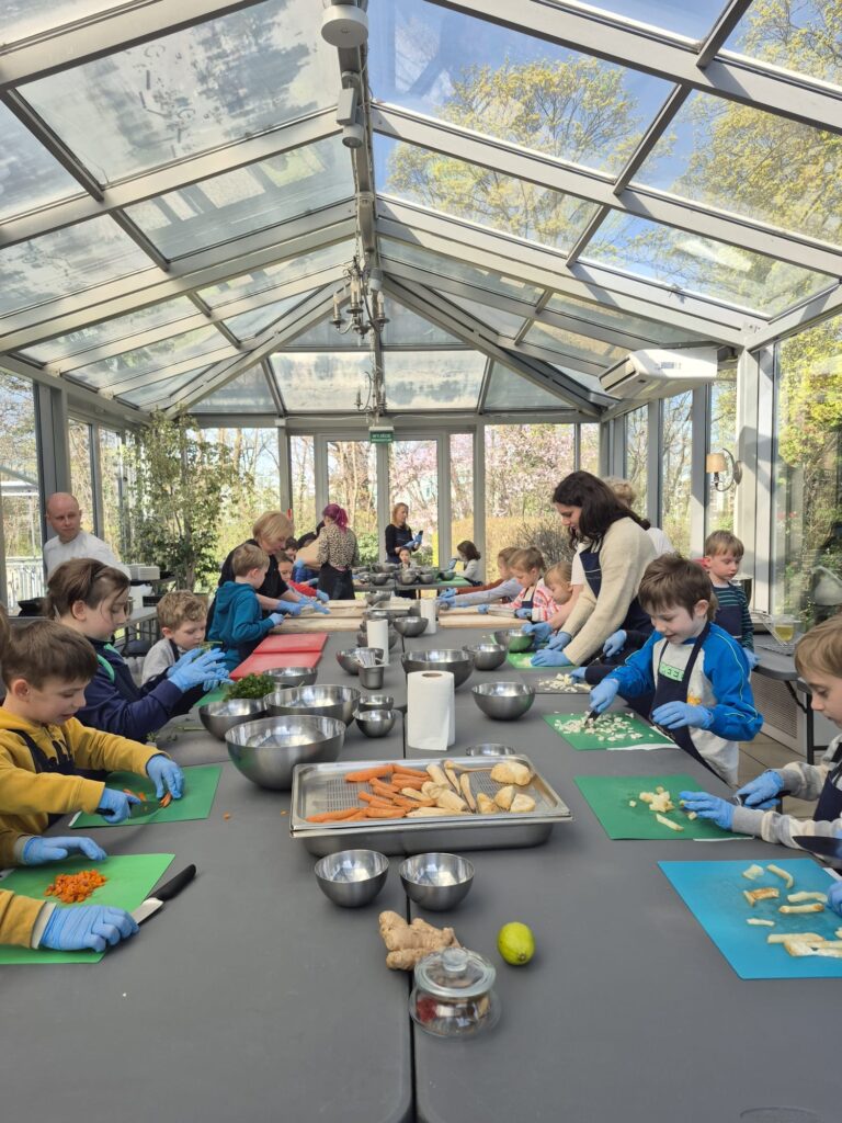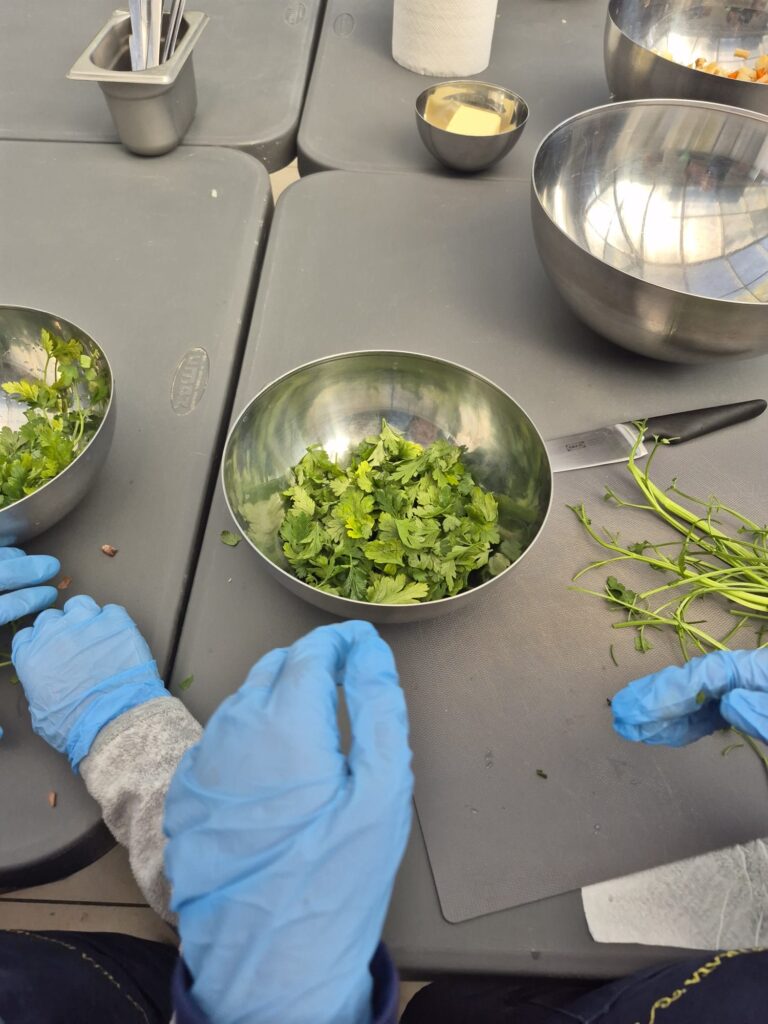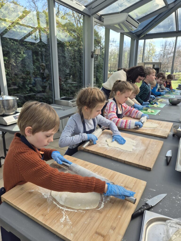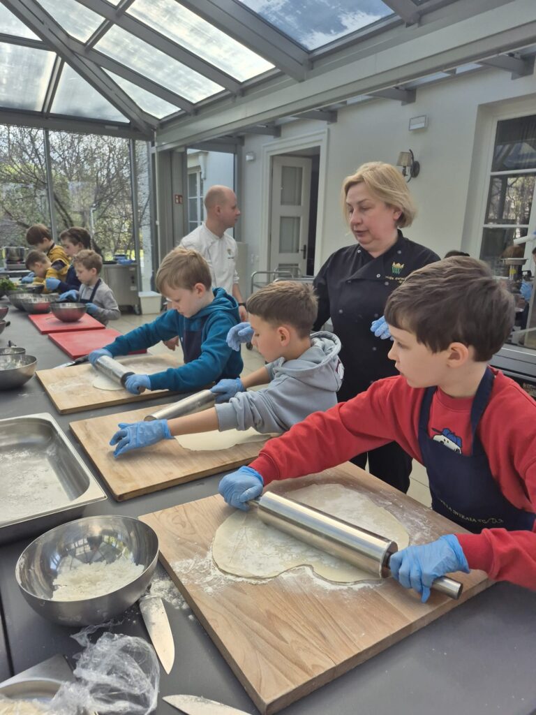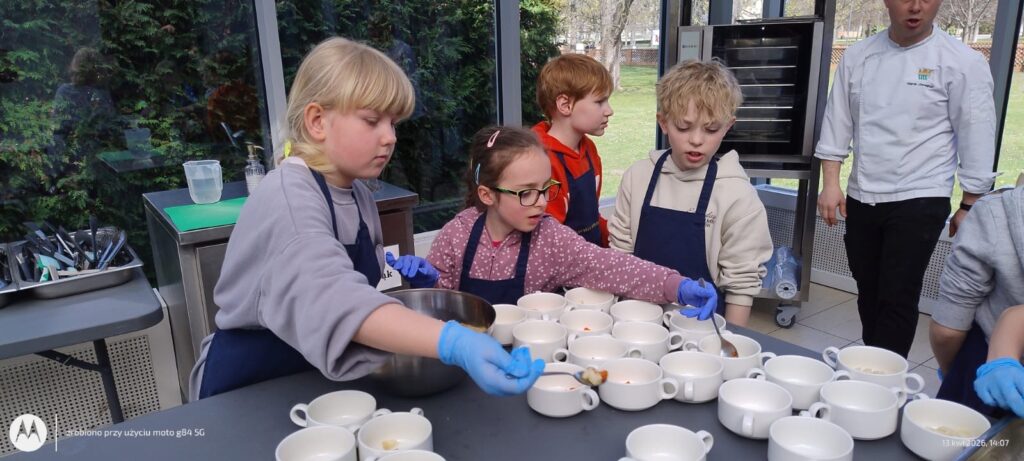 Podczas wizyty uczniowie poznali tajniki kuchni staropolskiej i wcielili się w rolę dawnych kucharzy. Własnoręcznie przygotowali tradycyjny rosół z kuleczkami mięsnymi oraz ręcznie robiony makaron, a także samodzielnie nakryli do stołu, dbając o każdy szczegół 🍽️